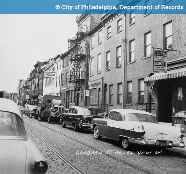 Before urban renewal, as suggested by the accompanying image of the north side of the 400 block of Lombard Street, these two corners were filled with buildings: both mixed-use and purely residential. But the city hoped that existing institutions – including schools, hospitals, synagogues, and churches – would serve as anchors around which redevelopment would flourish. They used urban renewal to offer these organizations the opportunity to acquire additional property at an affordable price in order to expand their footprints. Such was the case at St. Peter’s Episcopal Church, to the east—which extended its school building and grounds—and Old Pine Presbyterian Church to the west—which built a Community Center and the Presbyterian Historical Society in the 1960s and ‘70s.