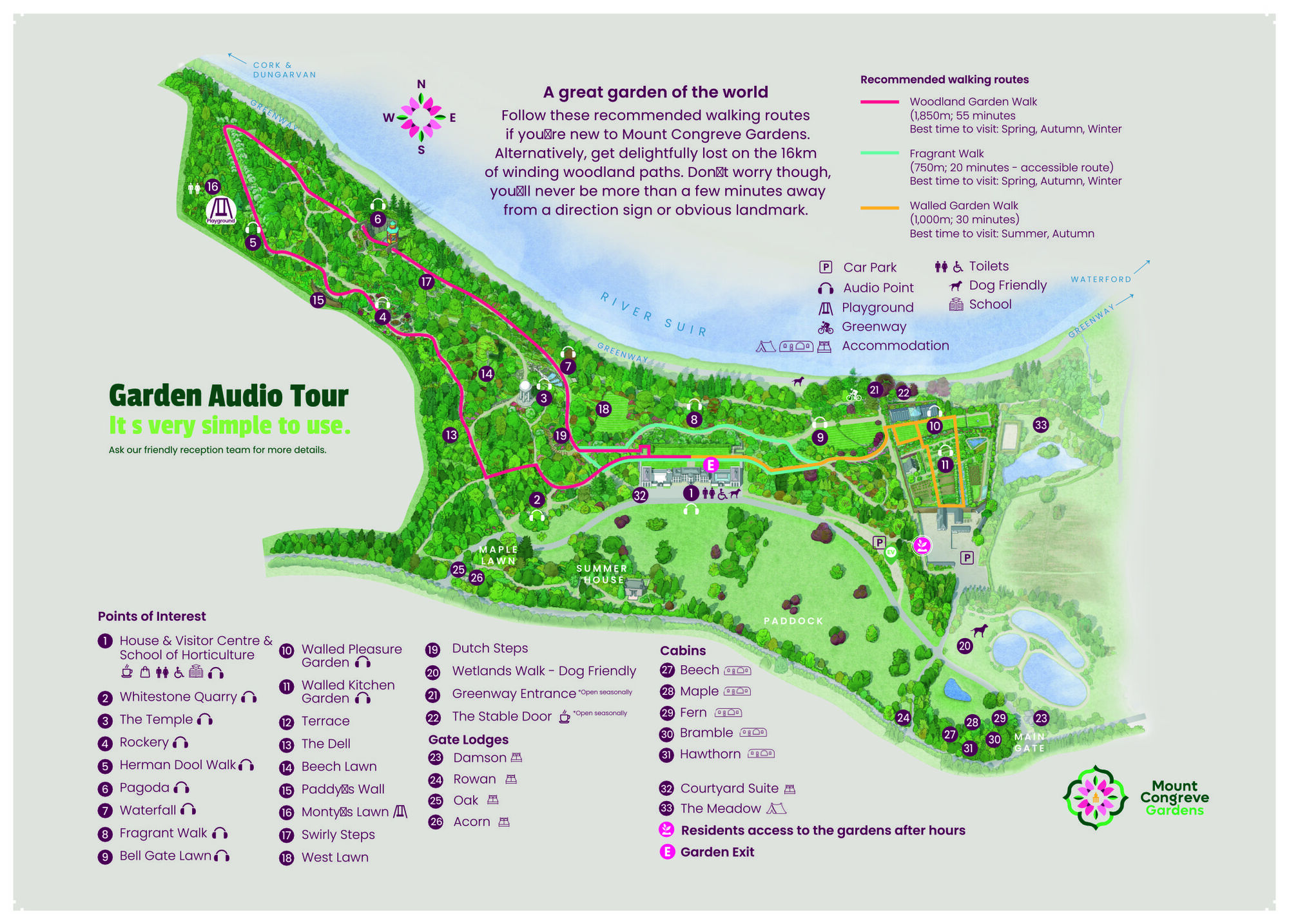 Tugann an Dell in aice láimhe, atá timpeallaithe ag azaleas, spás ciúin a threoraíonn na cuairteoirí chomh fada leis an dteampall agus an chuid eile den ngairdín.