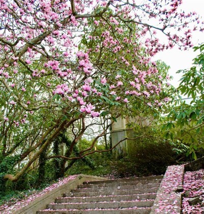 Is pointe suntasach é an Cosán Boladhach, le bláthanna ar feadh deich mí sa bhliain, lena n-áirítear Daphne, Sarcococa, Rhododendron agus Mahonia. I measc na bplandaí suntasacha tá Daphne bholua ‘Jacqueline Postill’, a tháinig ó síolta a bhailíodh sa Neipeal agus a forbraíodh i Sasana, agus Rhododendron loderi, hibrid ó Sir Giles Loder le bláthanna móra cumhra. Tá 52 cineál Mahonia agus crainn handkerchief sa ghairdín freisin, a tugadh ón tSín ag deireadh an 19ú haois. Fuarthas Magnolia campbellii buí speisialta, “Valentine’s Torch”, ag bláthú go luath go neamhghnách sa bhliain 2006. Críochnaíonn an cosán le Magnolia soulangeana, darbh ainm oifigeach marcshlua Francach, ag cur béime ar scéalta stairiúla agus bitheolaíocha na bailiúcháin iontacha seo.