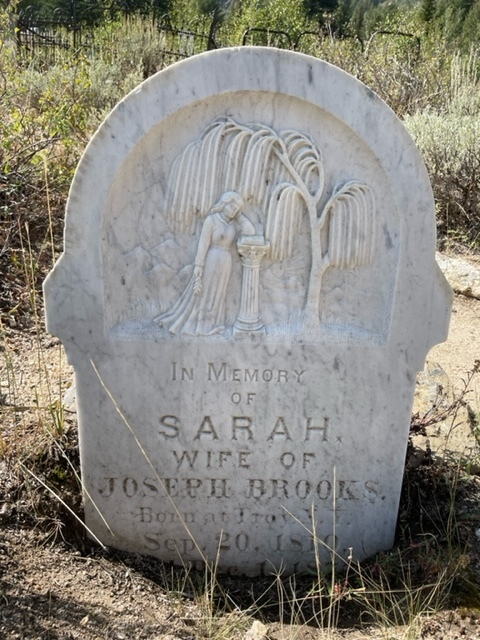 Sarah's husband, Joseph Brooks, was a native of England. The 1870 census listed him as 60 years old with the occupation of grocer. He was still living in Silver City during the 1880 Census where he listed his occupation as “owns toll road.” He was remarried to Louisa C Brownell, a widow with a 21-year old son who was working at a quartz mine. Joseph lived to be 81, dying in 1891 and buried at the Boise Pioneer Cemetery.