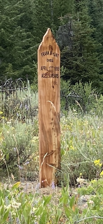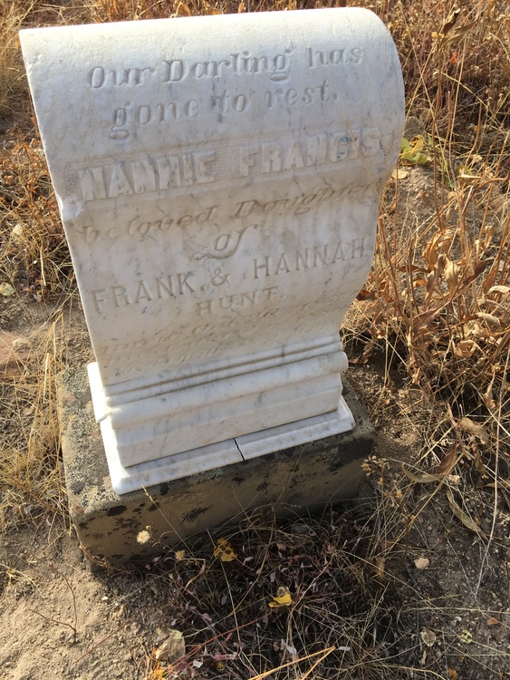 This is the final resting place of Nannie Francis Hunt and her father Frank M Hunt. Frank’s gravestone was wooden and was lost until recently. Glass negatives from the area were recently discovered and one photo showed Frank’s grave. A marker was replaced in 2023 next to his daughter's.