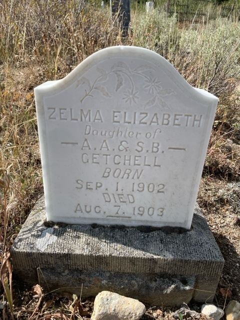 Asher Aurthur Getchell married Silver City resident Selma Adaline Brunzell in 1901. They had twin infant girls, Arline Smith and Zelma Elizabeth in 1902. Sadly, Arline died suddenly at age two months and Zelma passed nine months later.