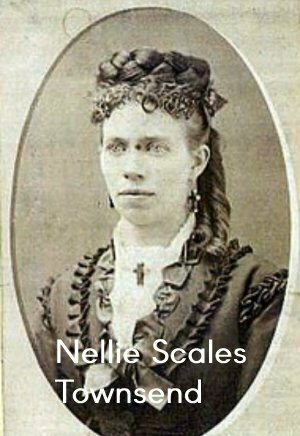 Nellie Scales Townsend died in 1916 at age 71. The newspaper said after suffering but a few days from a partial paralytic stroke, the soul of Mrs. Nellie Townsend was called to its reward from the home of her son, Bert, in this city. The deceased was one of the pioneer women in this county, having come in the early 60s with her husband and has lived in this county and state almost continuously since. She was born in Ireland in 1845.