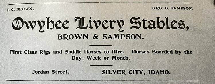 George came to Silver in 1871. He was an engineer in the mines. In 1893 he purchased the Silver City and Delamar stage lines and the livery soon after. In 1896 he bought the 800 acre Palmer Ranch in Pleasant Valley. He represented Owyhee County in the 1888 legislative session. He remarried Margaret Hutchinson in Silver City in 1903 and passed away in Nampa in 1907.