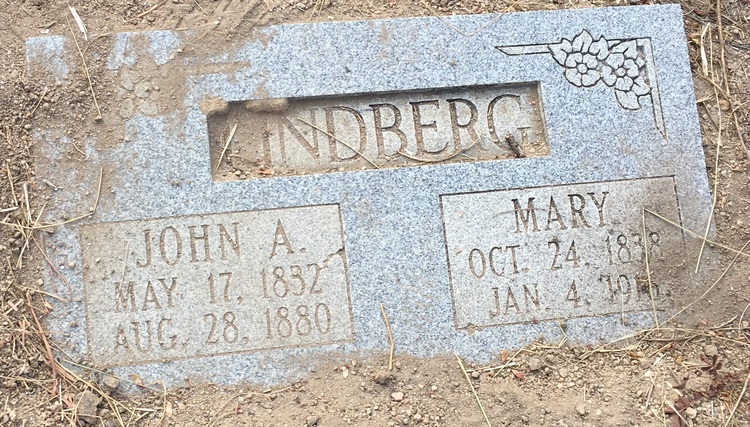 John and Mary Lindberg are laid to rest here. John immigrated from Sweden and died at age 47 in 1880 from suicide. John and Mary’s nine-year-old daughter discovered her father’s body through the window of their house. The Owyhee Avalanche reported he “severed an artery, tapping it at the wrist and laying himself down on a bed deliberately ending his days by the slow process of bleeding to death.” The newspaper said Lindberg was addicted to drinking and at times subject to fits of melancholy.