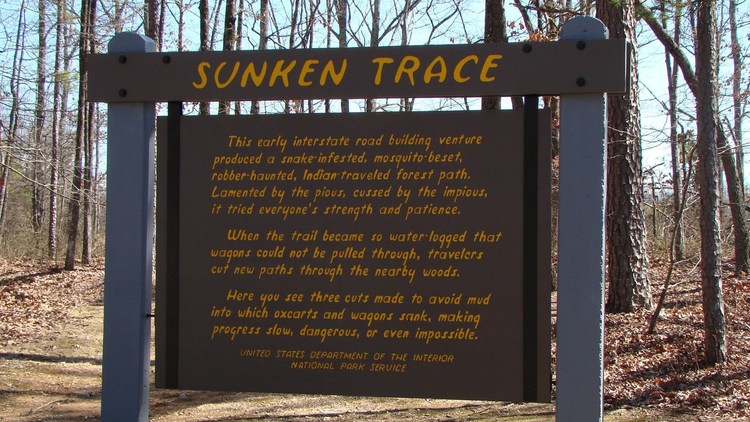 When the trail became so water logged that wagons could not be pulled through, travelers cut new paths through the nearby woods as a detour.