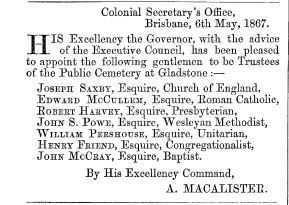 Gladstone Cemetery Appointment of Trustees