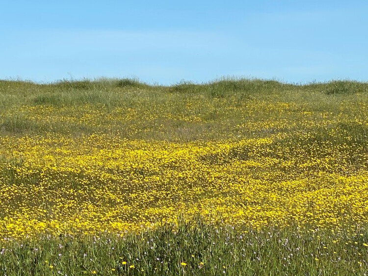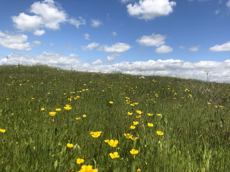 Before European settlement, California’s grasslands were dominated by native perennial grasses and a remarkable diversity of wildflowers. Natural cycles of grazing, fire, and seasonal rest allowed these plants to thrive. Early explorer John Muir famously described the landscape as “not grass with flowers sprinkled through it, but flowers with grass sprinkled through them.”