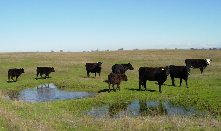 Grazing helps keep non-native grasses and plants shorter, preventing them from reseeding and using too much water, while also adding nutrients back to the soil. Research has shown that one cow per six acres with a calf is the maximum for healthy vernal pool ecosystems. Studies comparing grazing styles—ungrazed, dry-season grazing, wet-season grazing, and year-round grazing—found that always grazed pools performed best in supporting vernal pool biodiversity.