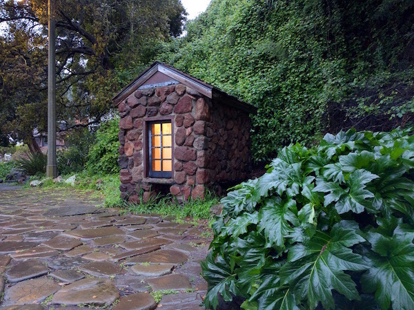 "Gravity is a Law in the Material Word, Levitation is a Law in the Spiritual World" is an art installation in Sausalito's Tiffany Park, near the corner of Bridgeway and Richardson. The piece was created by artist Tim Collins.