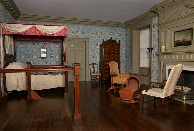 Cette chambre, connue sous le nom de La Grande Chambre à coucher, est interprétée comme la chambre de Sally Brown et de ses enfants. En 1800, elle épouse l’immigrant allemand Carl Friedrich Herreshoff et déménage à New York. Au moment de la mort de John Brown, Sally et son mari, plus tard connu sous le nom de Charles, ont deux enfants et relocalisent leur famille à Providence afin de se rapprocher de sa famille. Dans cette maison, le couple aura quatre autres enfants. Sally élève les enfants sans la présence de leur père, alors qu'il travaille de plus en plus sur la terre de John Brown dans le nord de l'État de New York. Malheureusement, en 1819, il se suicidera. Bien que nous ne puissions pas être sûrs de la façon dont ces pièces ont été utilisées, nous pouvons imaginer, grâce à nos recherches, que cette pièce fut remplie de rires et de bruits créés par les jeux d'enfants. Sally et ses six enfants, ainsi que d'autres membres de la famille Brown pouvaient facilement partager une chambre de cette taille. En fait, les jouets que vous voyez devant vous appartenaient à John Brown Francis, fils d’Abby Brown.