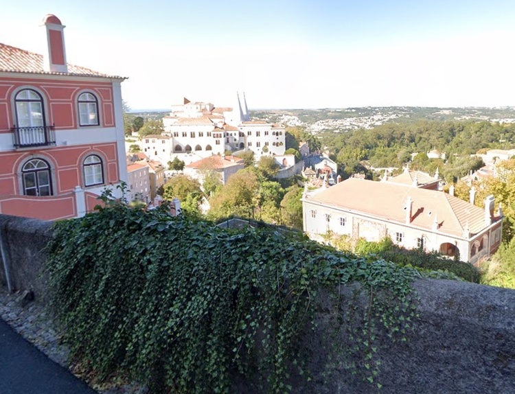 En el lado derecho una hermosa vista panorámica del centro del pueblo, donde destacamos un símbolo de Sintra, las chimeneas moriscas del Palacio Nacional.