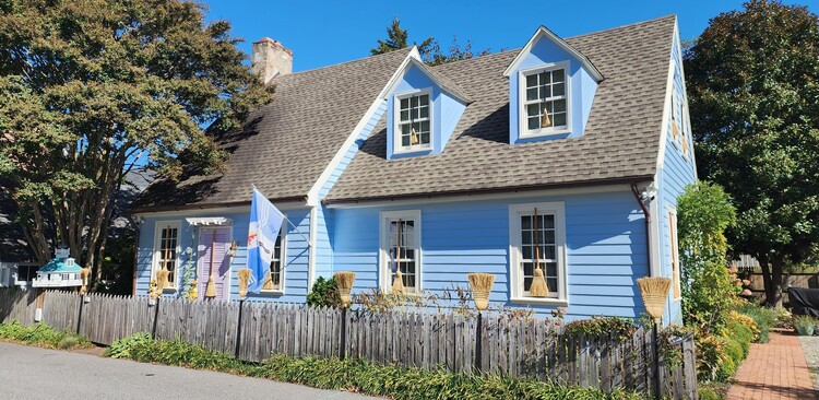 The left portion of this modest frame house, built about 1800 to 1802, was the dwelling of shipbuilder Thomas Haddaway, whose shipyard was immediately behind his house—land that is now part of today’s Higgins Yacht Yard. Haddaway had a schooner hull under construction here at the time of the British attack.