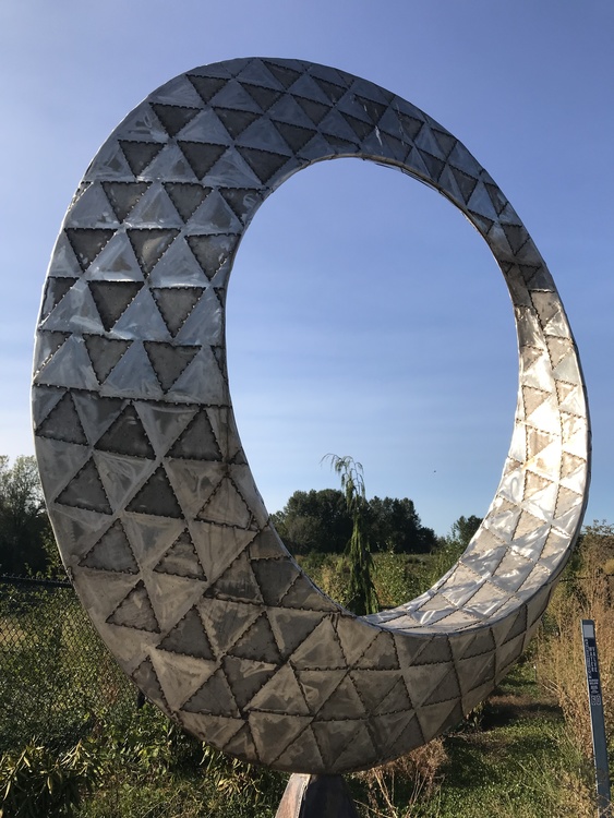 Artis Ben Dye's spectacular "Atomic Mobius" sculpture appears to have secretly, and almost literally, captured Harold Dahl's description of round, metallic, flying objects with "holes in the middle" such that they were shaped like "donuts."
