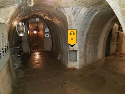 Vous venez de faire 100 mètres de galerie, au bas des escaliers la galerie se poursuit sur 150 mètres, puis des échelles vous permettent d’accéder à la casemate trois étages plus haut.