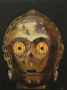Tom Clay is an English artist currently painting in Switzerland. Although he specializes in landscapes, Clay also paints more "whimsical" subjescts such as this head portrait of C3PO. C3PO is an interesting subject, as opposed to any of the stars of the movie.