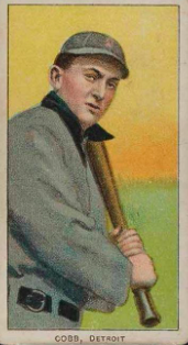 The T-206 baseball card series is one of the most coveted by baseball card collectors. The cards were inserted into cigarette packs between 1909 and 1911 and distributed by the American Tobacco Company under brands like Piedmont, Caporal, Sovereign, Old Mill and others. Some players, such as Ty Cobb had more than one card produced during this time; “Bat on Shoulder” is one of four variations of the Detroit Tiger great.