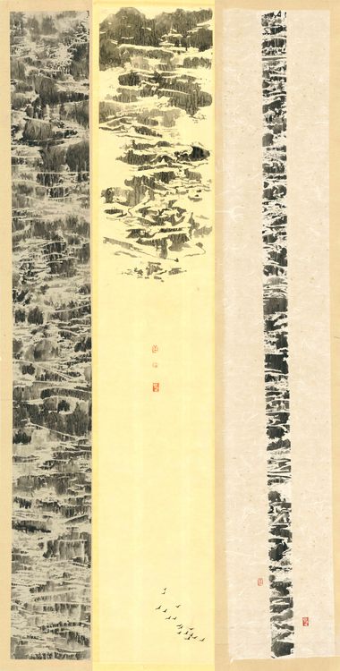 By using the simple elements of water and ink on architect's tracing paper, these two elements collide freely on paper to achieve the wonderful contemporary ink art work.