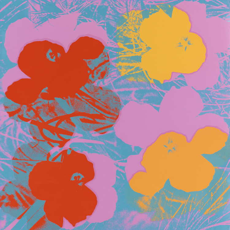 One of Warhol’s most recognizable prints, Flowers was produced in a range of color variations. The image is based on a 1964 photograph of hibiscus blossoms by Patricia Caulfield, originally published in Modern Photography. Created at Warhol’s studio, The Factory, the series exemplifies the detached, mechanical approach that defined his style. The motif was suggested by curator Henry Geldzahler as Warhol prepared for his first solo show at Leo Castelli Gallery, marking a decisive shift from the darker Death and Disaster works that preceded it.