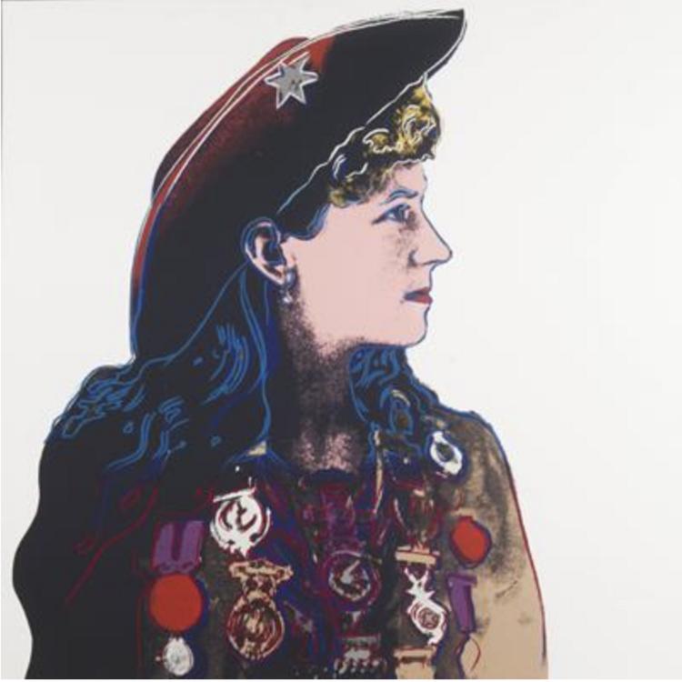 Like his image of John Wayne, this print reflects Warhol’s fascination with Americana and the Westerns of the 1930s and ’40s. The source is an 1890 photograph by Anthony Percival taken in London while Oakley toured with Buffalo Bill’s Wild West Show.