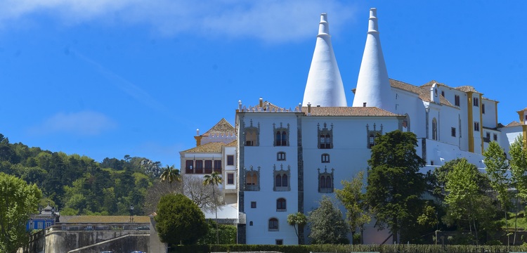 On the left side a beautiful panoramic view of the National Palace of Sintra also known as Palácio da Vila. It is the only survivor of the medieval royal palaces in Portugal. The Palace was used by the Portuguese Royal Family practically until the end of the Monarchy in 1910. The first intervention was in 1281.