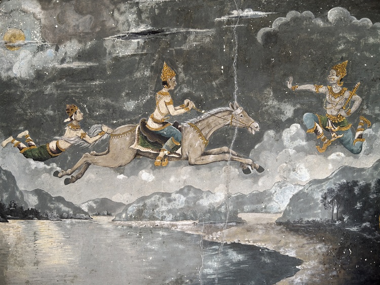 Siddhartha Gotama takes with him his royal attendant and his favorite horse. He departs out of the palace and embarks on a journey to attain Enlightenment.