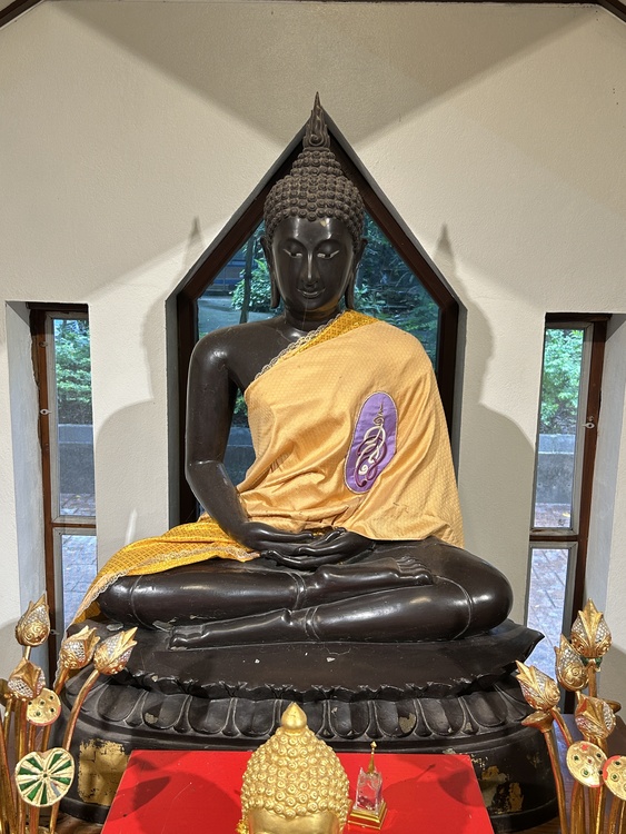 Over to the right, you can see a photo of King Rama 9 as an Ordained Practitioner. It is common to see photos of King Rama 9 in places where people gather. He was a very beloved King. The Thai people have a lot of gratitude and respect for him.