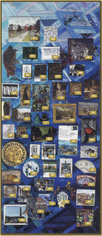Welcome to the “Arts For All” panel, a celebration of Leeds’ creative spirit. Imagine you’re stepping into the office of the head of Leeds Museums & Galleries, where a decorative pinboard is covered with prints and postcards. Each one is a piece of art connected to Leeds, carefully recreated in embroidery by dedicated volunteers.