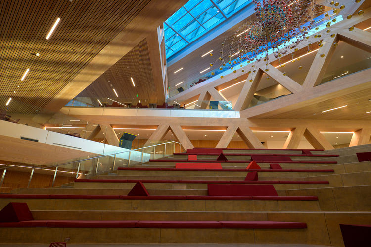 Designed to be open and inviting, the Social Stairs are at the heart of the building, embodying the spirit of community and interdisciplinary exchange that defines the Robert Day Sciences Center.