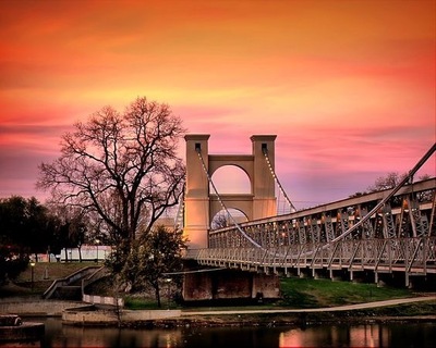 Over the years, the wood planking was upgraded and replaced. In 1913, the City replaced the older steel with higher gauge steel to handle the heavier traffic and trusses were added to accommodate pedestrian traffic. The brick towers were rebuilt and stuccoed, giving the structure virtually the same appearance it has today. The bridge was designated in the National Register of Historic Places in 1970 on its centennial anniversary. It was retired from vehicular traffic the following year but is still in continuous use for other traffic and events.