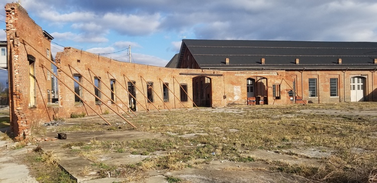 Unfortunately, there were two disasters that affected the East Roundhouse contributing to its current state of ruin. The first disaster was a trainwreck that occurred inside the roundhouse in the 1930s. A train derailed inside the building causing a fire. The wreck damaged the building's cast-iron framework as the heat from the fire expanded the framework. Due to the expansion of the cast iron frame, it could no longer support the building. So the Baltimore and Ohio company had to replace the original frame with a wooden frame.