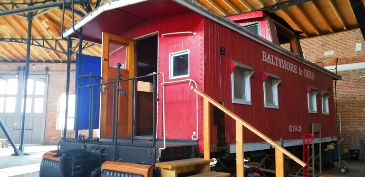 The caboose housed in Martinsburg Roundhouse was built circa 1913 for the Baltimore and Ohio Railroad Company.