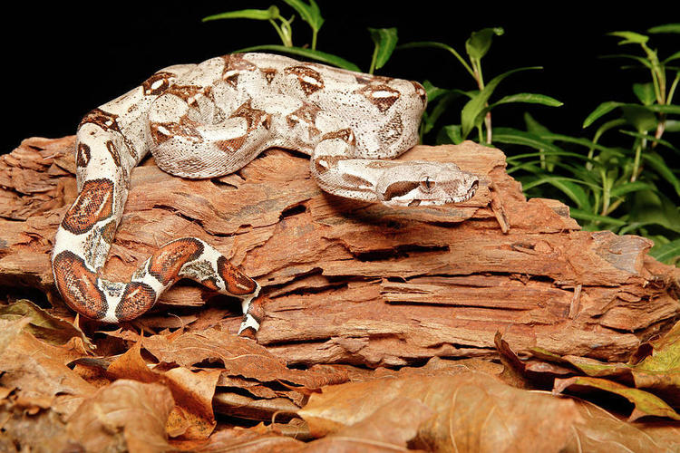 The red-tailed boa is a member of the Boidae family of snakes. It can be found in North, South, and Central America. The boa constrictor can survive in a wide array of habitats from semi-deserts to rain forests. The most important aspect of its environment is the temperature. They prefer humid areas and in rain forests often live by rivers where they have plenty of ground cover.